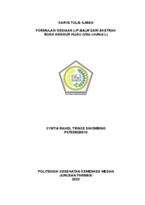 SIHOMBING, CYNTIA RAHEL TRINCE SIHOMBING (2023) FORMULASI SEDIAAN LIP BALM DARI EKSTRAK BUAH ANGGUR HIJAU (Vitis vinifera L.). Diploma thesis, Poltekkes Kemenkes Medan.