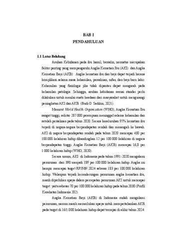Asuhan kebidanan pada ibu hamil, bersalin, neonatus merupakan faktor penting yang mempengaruhi Angka Kematian Ibu (AKI) dan Angka Kematian Bayi). Angka kematian ibu dan bayi dapat terjadi karena komplikasi selama masa kehamilan, persalinan, nifas dan bayi baru lahir.