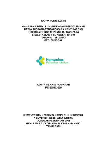 Pakpahan, Corry Renata (2025) Gambaran Penyuluhan dengan Menggunakan Media Diorama Tentang Cara Menyikat Gigi Terhadap Tingkat Pengetahuan Pada Siswa\i Kelas V SD Negeri 101740 Tanjung Selamat Kec. Sunggal. Diploma thesis, Poltekkes Kemenkes Medan.