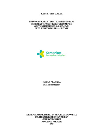NABILA PRASISKA, NABILA PRASISKA (2025) HUBUNGAN KARAKTERISTIK PASIEN TB PARU TERHADAP TINGKAT KEPATUHAN MINUM OBAT ANTITUBERKULOSIS (OAT) DI UPTD. PUSKESMAS BINJAI ESTATE. Diploma thesis, Poltekkes Kemenkes Medan.
