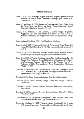 Kata kunci: Kepatuhan, karakteristik pasien, TB Paru.