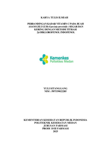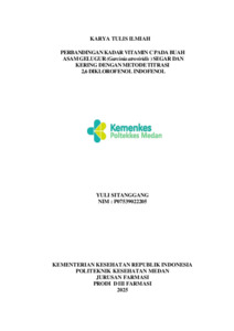 SITANGGANG, YULI (2025) PERBANDINGAN KADAR VITAMIN C PADA BUAH ASAM GELUGUR (Garcinia atroviridis) SEGAR DAN KERING DENGANMETODETITRASI 2,6 DIKLOROFENOL INDOFENOL. Diploma thesis, Poltekkes Kemenkes Medan.