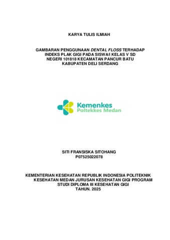 Sitohang, Siti Fransiska (2025) Gambaran Penggunaan Dental Floss Terhadap Indeks Plak Gigi Pada Siswa/i Kelas V SD Negeri 101818 Kecamatan Pancur Batu Kabupaten Deli Serdang. Diploma thesis, Poltekkes Kemenkes Medan.