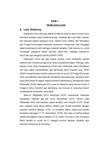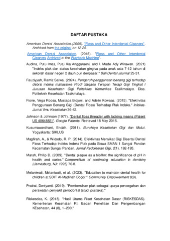 mikroorganisme yang berkembang biak dalam suatu matriks interseluler yang melekat erat pada permukaan gigi. Tujuan penelitian adalah untuk mengetahui indeks plak gigi sebelum dan sesudah penggunaan dental floss.