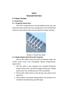 Dental floss merupakan suatu alat bantu efektif untuk membersihkan gigi (plak), sisa makanan diantara gigi yang tidak dapat dijangkau oleh sikat gigi.
