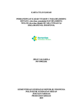 JIHAN SALSABILA, JIHAN SALSABILA (2025) PERBANDINGAN KADAR VITAMIN C PADA BELIMBING BINTANG (Averrhoa carambola) DAN BELIMBING WULUH (Averrhoa blimbi) SECARA TITRASI 2,6 DIKLOROFENOL INDOFENOL. Diploma thesis, Poltekkes Kemenkes Medan.