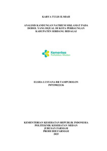 BR TAMPUBOLON, ELSHA LUSYANA (2025) ANALISIS KANDUNGAN NATRIUM SIKLAMAT PADA DODOL YANG DIJUAL DI KOTA PERBAUNGAN KABUPATEN SERDANG BEDAGAI. Diploma thesis, Poltekkes Kemenkes Medan.