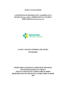 Sitepu, Agnes Vaswary Femerena Br. (2025) UJI EFEKTIVITAS EKSTRAK ETIL ALKOHOL DAUN KELOR (Moringa oleifera) TERHADAP DAYA HAMBAT PERTUMBUHAN Escherichia coli. Diploma thesis, Poltekkes Medan.
