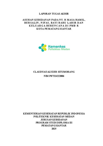 Situmorang, Claudya Ealyzer (2025) Asuhan Kebidanan Pada Ny. R Masa Hamil, Bersalin, Nifas, Bayi Baru Lahir dan Keluarga Berencana di PMB R Kota PematangSiantar.
