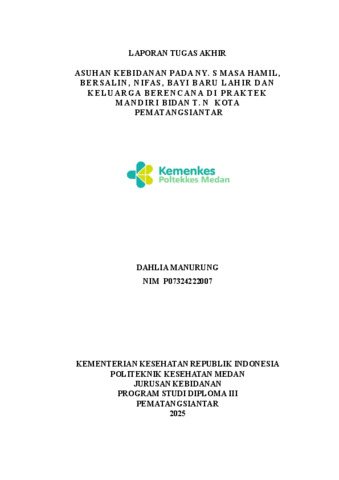 Manurung, Dahlia (2025) Asuhan Kebidanan Pada Ny. S Masa Hamil, Bersalin, Nifas, Bayi Baru Lahir dan Keluarga Berencana di Praktek Mandiri Bidan T.N Kota Pematangsiantar.