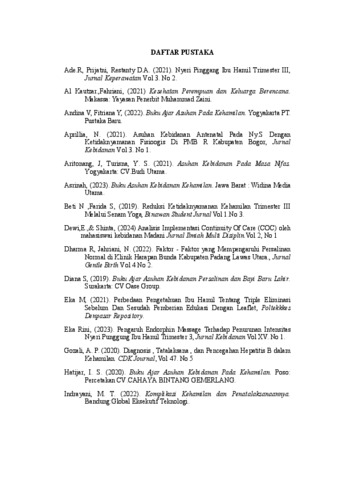 Latar Belakang : Kehamilan, persalinan, dan nifas merupakan suatu keadaan
