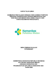 Silalahi, Nera Febriani (2025) Gambaran Penyuluhan Dengan Video Animasi Powtoon Terhadap Pengetahuan Tentang Menggosok Gigi Yang Baik Dan Benar Pada Siswa/I Kelas II SDN 101818 Kecamatan Pancur Batu. Diploma thesis, Poltekkes Kemenkes Medan.