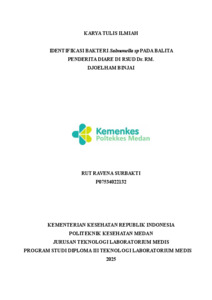 Surbakti, Rut Ravena (2025) IDENTIFIKASI BAKTERI Salmonella sp PADA BALITA PENDERITA DIARE DI RSUD Dr. RM. DJOELHAM BINJAI. Diploma thesis, Poltekkes Medan.