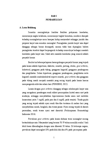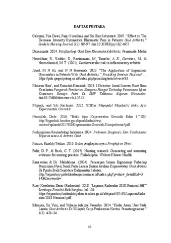 urat di sendi, menyebabkan nyeri, bengkak, dan kekakuan. Intervensi non�farmakologis, seperti senam ergonomik, dianggap efektif dalam mengurangi nyeri