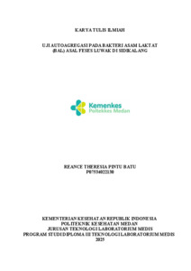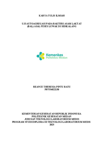 Pintu Batu, Reance Theresia (2025) UJI AUTOAGREGASI PADA BAKTERI ASAM LAKTAT (BAL) ASAL FESES LUWAK DI SIDIKALANG. Diploma thesis, Poltekkes Medan.
