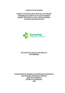 SITUMEANG, SRI ANGELIA SONATA (2025) HUBUNGAN KEPATUHAN MENJALANI TERAPI HEMODIALISA DENGAN KUALITAS HIDUP PASIEN PENYAKIT GAGAL GINJAL KRONIK DI RSUD DOLOKSANGGUL. Diploma thesis, Poltekkes Kemenkes Medan.