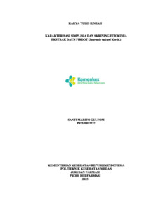 GULTOM, SANTI MARITO (2025) KARAKTERISASI SIMPLISIA DAN SKRINING FITOKIMIA EKSTRAK DAUN PIRDOT (Saurauia vulcani Korth.). Diploma thesis, Poltekkes Kemenkes Medan.