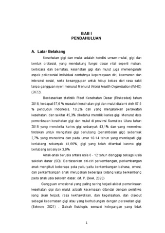 Kata kunci : Kecemasan Dental, Anak Usia Sekolah Dasar, Perawatan Gigi, CFSS DS
