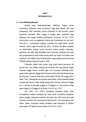 Latar Belakang : Asuhan kebidanan mengutamakan pelayanan yang