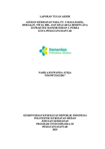 ATIQA, NABILA RISWANDA (2025) Asuhan Kebidanan Pada Ny. S Masa Hamil Sampai Dengan Masa KB di Praktek Mandiri Bidan S. Purba Kota Pematangsiantar.
