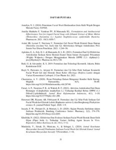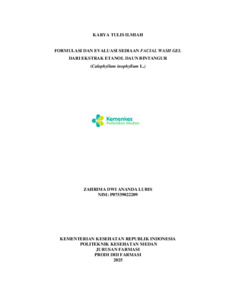 LUBIS, ZAHRIMA DWI ANANDA (2025) FORMULASI DAN EVALUASI SEDIAAN FACIAL WASH GEL DARI EKSTRAK ETANOL DAUN BINTANGUR (Calophyllum inophyllum L.). Diploma thesis, Poltekkes Kemenkes Medan.