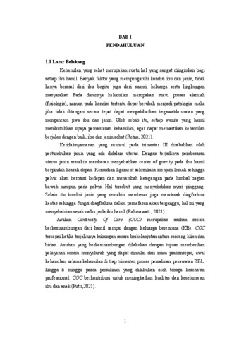 Kesimpulan : Asuhan countinuity of care yang telah dilakukan memberikan