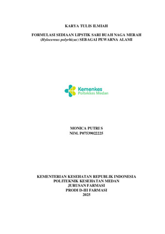 untuk digunakan dalam formulasi lipstik. Penelitian ini bertujuan untuk mengetahui