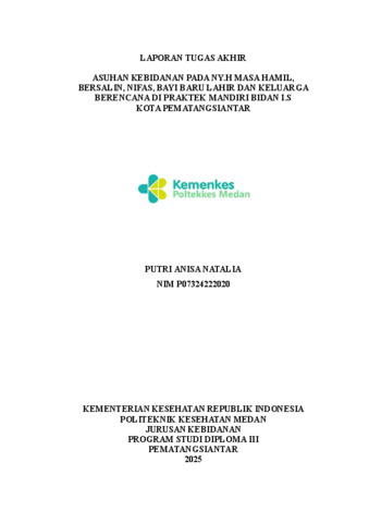 NATALIA, PUTRI ANISA (2025) Asuhan Kebidanan Pada Ny.H Masa Hamil, Bersalin, Nifas, Bayi Baru Lahir, Dan Keluarga Berencana di Praktek Mandiri Bidan I.S Kota Pematangsiantar.