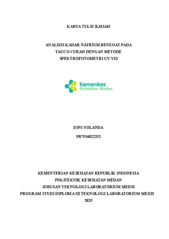 DINI, YOLANDA (2025) ANALISIS KADAR NATRIUM BENZOAT PADA TAUCO CURAH DENGAN METODE SPEKTROFOTOMETRI UV-VIS. Diploma thesis, Poltekkes Medan.