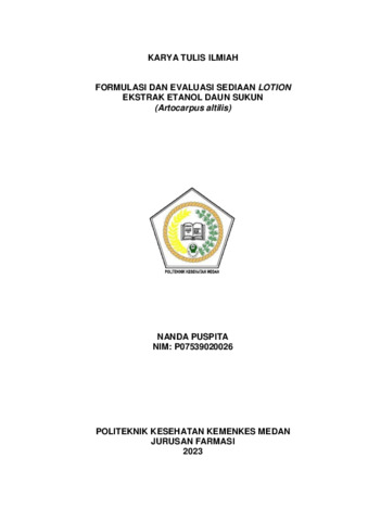 NANDA PUSPITA, NANDA PUSPITA (2023) FORMULASI DAN EVALUASI SEDIAAN LOTION EKSTRAK ETANOL DAUN SUKUN (Artocarpus altilis). Diploma thesis, Poltekkes Kemenkes Medan.