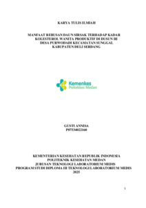 Sinuraya, Gusti Annisa (2025) MANFAAT REBUSAN DAUN SIRSAK TERHADAP KADAR KOLESTEROL WANITA PRODUKTIF DI DUSUN III DESA PURWODADI KECAMATAN SUNGGAL KABUPATEN DELI SERDANG. Diploma thesis, Poltekkes Medan.