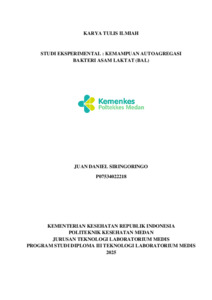 Siringoringo, Juan Daniel (2025) STUDI EKSPERIMENTAL : KEMAMPUAN AUTOAGREGASI BAKTERI ASAM LAKTAT (BAL). Diploma thesis, Poltekkes Medan.