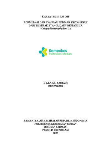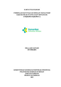 Dilla Ari Saniadi, Dilla Ari Saniadi (2025) FORMULASI DAN EVALUASI SEDIAAN FACIAL WASH DARI EKSTRAK ETANOL DAUN BINTANGUR (Calophyllum inophyllum L.). Diploma thesis, Poltekkes Kemenkes Medan.