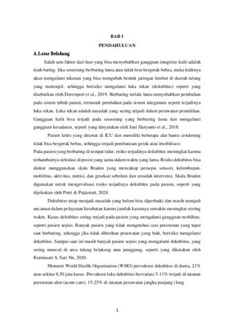 Latar Belakang: Dekubitus merupakan komplikasi serius yang sering terjadi pada pasien