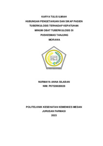 SILABAN, NURMAYA ANNA SILABAN (2023) HUBUNGAN PENGETAHUAN DAN SIKAP PASIEN TUBERKULOSIS TERHADAP KEPATUHAN MINUM OBAT TUBERKULOSIS DI PUSKESMAS TANJUNG MORAWA. Diploma thesis, Poltekkes Kemenkes Medan.