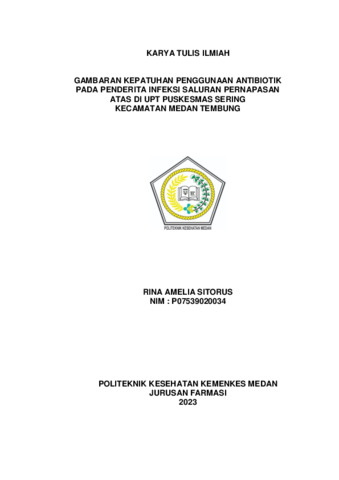 SITORUS, RINA AMELIA SITORUS (2023) GAMBARAN KEPATUHAN PENGGUNAAN ANTIBIOTIK PADA PENDERITA INFEKSI SALURAN PERNAPASAN ATAS DI UPT PUSKESMAS SERING KECAMATAN MEDAN TEMBUNG. Diploma thesis, Poltekkes Kemenkes Medan.