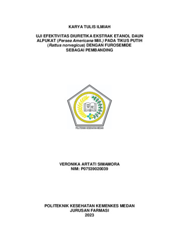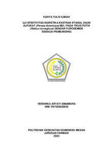 SIMAMORA, VERONIKA ARTATI SIMAMORA (2023) UJI EFEKTIVITAS EKSTRAK ETANOL DAUN ALPUKAT (Persea americana Mill.) PADA TIKUS PUTIH (Rattus norvegicus) DENGAN FUROSEMIDE SEBAGAI PEMBANDING. Diploma thesis, Poltekkes Kemenkes Medan.