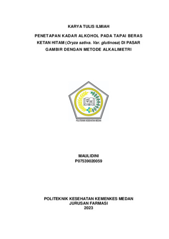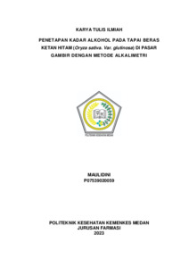MAULIDINI, MAULIDINI (2024) PENETAPAN KADAR ALKOHOL PADA TAPAI BERAS KETAN HITAM (Oryza sativa. Var. glutinosa) DI PASAR GAMBIR DENGAN METODE ALKALIMETRI. Diploma thesis, Poltekkes Kemenkes Medan.