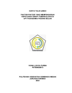 PURBA, VIONA LOVICA PURBA (2023) FAKTOR-FAKTOR YANG MEMPENGARUHI KEPATUHAN TERAPI TUBERKULOSIS DI UPT PUSKESMAS PADANG BULAN. Diploma thesis, Poltekkes Kemenkes Medan.