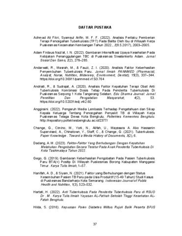 adanya kepatuhan dalam pengobatan minimal 6 bulan. Supaya pasien tuberkulosis
