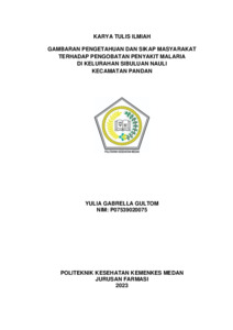GULTOM, YULIA GABRELLA GULTOM (2023) GAMBARAN PENGETAHUAN DAN SIKAP MASYARAKAT TERHADAP PENGOBATAN PENYAKIT MALARIA DI KELURAHAN SIBULUAN NAULI KECAMATAN PANDAN. Diploma thesis, Poltekkes Kemenkes Medan.