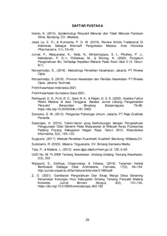 Kata Kunci : Pengetahuan, Sikap, Pengobatan Malaria