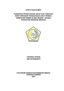 BARUS, VERONICA BARUS (2023) GAMBARAN PENGETAHUAN, SIKAP DAN TINDAKAN SISWI TERHADAP PENGGUNAAN OBAT PEREDA DISMENORE PRIMER DI SMA NEGERI 1 SILINDA KABUPATEN SERDANG BEDAGAI. Diploma thesis, Poltekkes Kemenkes Medan.