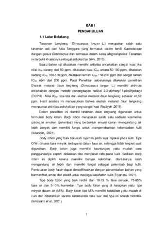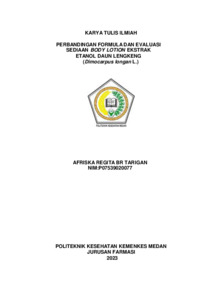 BR TARIGAN, AFRISKA REGITA BR TARIGAN (2023) FORMULASI DAN EVALUASI BODY LOTION EKSTRAK ETANOL DAUN LENGKENG (Dimocarpus Longan L.). Diploma thesis, Poltekkes Kemenkes Medan.