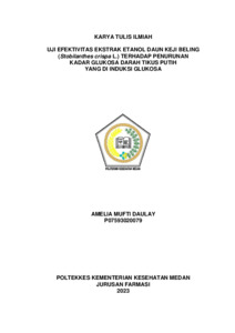 DAULAY, AMELIA MUFTI DAULAY (2023) UJI EFEKTIVITAS EKSTRAK ETANOL DAUN KEJI BELING (Stobilanthes crispa L.) TERHADAP PENURUNAN KADAR GLUKOSA DARAH PADA TIKUS PUTIH YANG DI INDUKSI GLUKOSA. Diploma thesis, Poltekkes Kemenkes Medan.