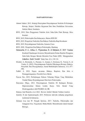 Kata Kunci: Identifikasi, metamfetamin, pelajar SMA, sabu-sabu