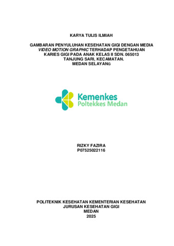 Fazira, Rizky (2025) Gambaran Penyuluhan Kesehatan Gigi Dengan Media Video Motion Graphic Terhadap Pengetahuan Karies Gigi Pada Anak Kelas II SDN.065013 Tanjung Sari, Kecamatan. Medan Selayang. Diploma thesis, Poltekkes Kemenkes Medan.