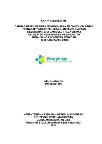 Simbolon, Iyen (2024) Gambaran Penyuluhan Menggunakan Media Pohon Pintar Terhadap Tingkat Pengetahuan Pemeliharaan Kebersihan Gigi Dan Mulut Pada Siswa/I Kelas III SD Negeri 030328 Desa Bandar Hutausang Kecamatan Pegagan Hilir Kabupaten Dairi. Diploma thesis, Poltekkes Kemenkes Medan.