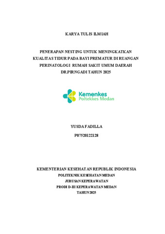Fadilla, Yusda (2025) Penerapan Nesting Untuk Meningkatkan kualitas Tidur Pada Bayi Prematur Di Ruangan Perinatologi Rumah Sakit Umum Daerah Dr Pirngadi Tahun 2025. Diploma thesis, Poltekkes Kemnkes Medan.