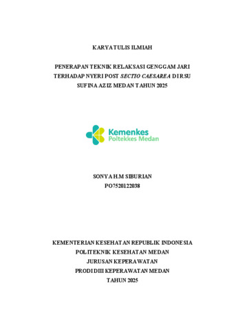 Siburrian, Sonya H.M (2025) Penerapan Teknik Relaksasi Genggam Jari Terhadap Nyeri Post Sectio Caesarea Di RSU Sufina Aziz Nedan Tahun 2025. Diploma thesis, Poltekkes Kemnkes Medan.